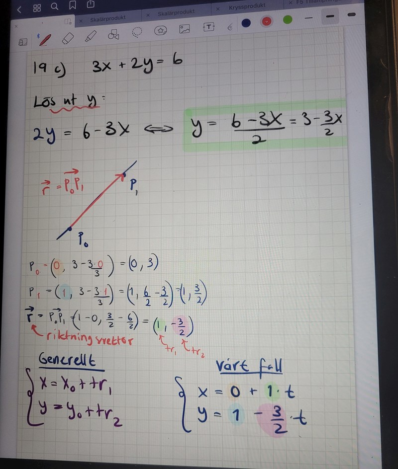 Du har skrivit att y = -1,5x+3 och sedan har du ritat en linje med positiv riktningskoefficient. Hur går det ihop?