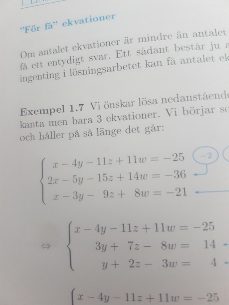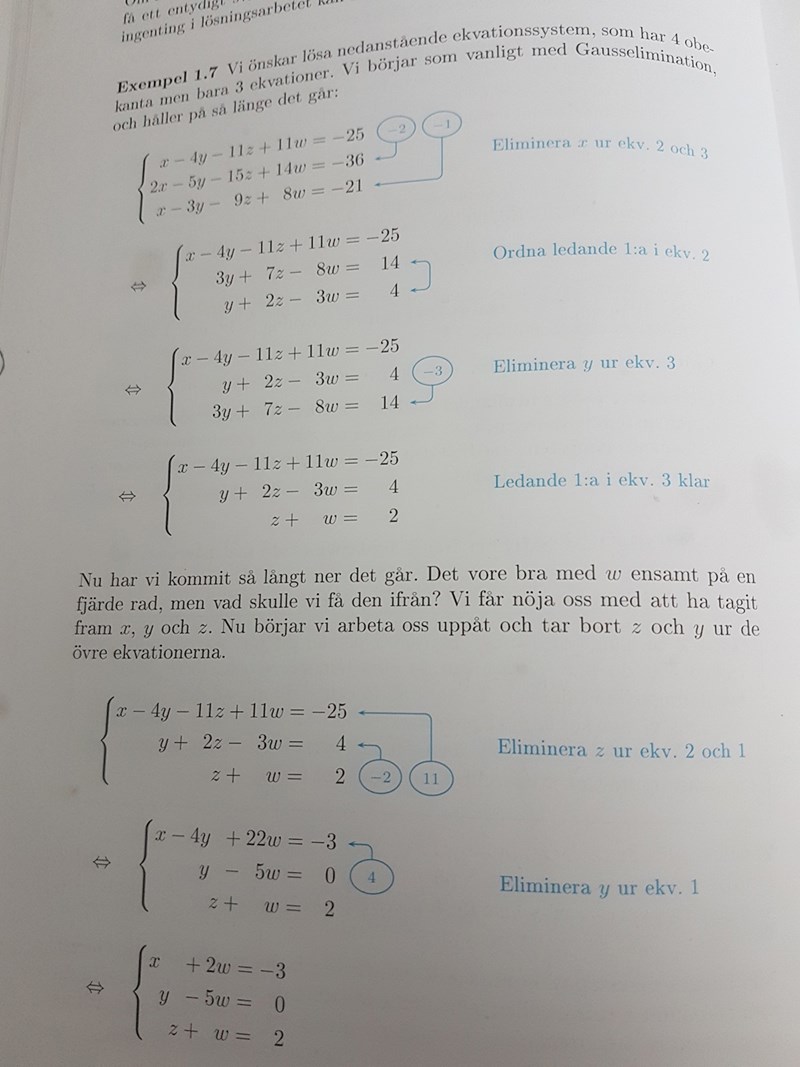 Och här är en annan lösning där jag istället för att eliminera z ur de undre ekvationerna, eliminerade w.