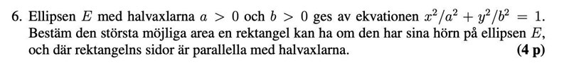 För att räkna uppgiften vi fick dela den i 4 rektanglar och parametrisera ellipsen med: