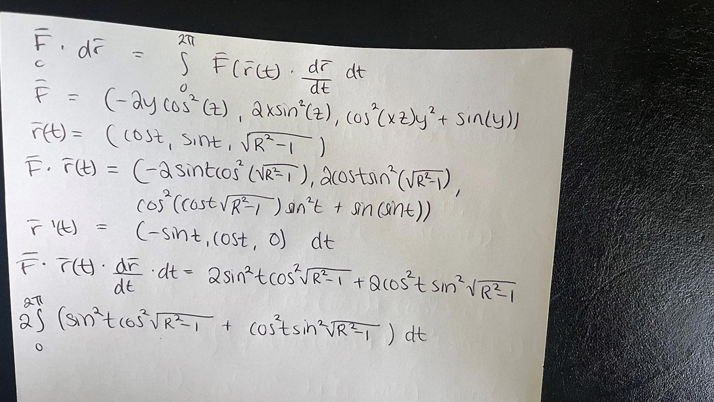 När man gångrar F med r(t) så får man ju tex x= -2sintcos2R2-1varför skriver de z då?