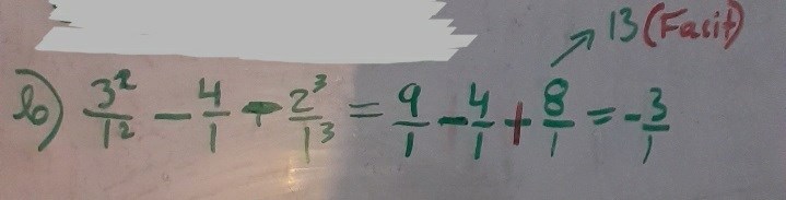 Det betyder att 9/1 - 4/1 + 8/1 = 9 - 4 + 8 = 5 + 8 = 13