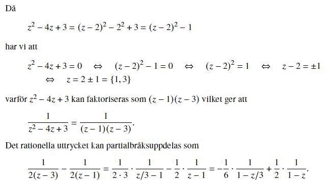 Får det till 14(z-1)-14(z-3)\frac{1}{4(z-1)} - \frac{1}{4(z-3)}