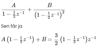 Sätter z-1=2 och löser ut B=1. För att beräkna A sätter jag z-1 till något slumpmässigt och tillsammans med B=1 löser jag ut A. Men borde jag inte få samma värde för A oavsett vad jag sätter z-1 till? För det får jag inte. Men hur som helst så får jag fram konstanter, reella värden, och i lösningen finns det z-1 med, vilket jag inte förstår.
