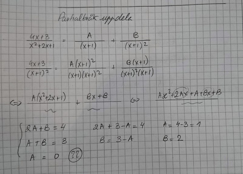 Nu verkar Daja plötsligt ha ändrat sig, och undrar varför min partialbråksuppdelning inte ger samma svar som uppdelningen av funktionen