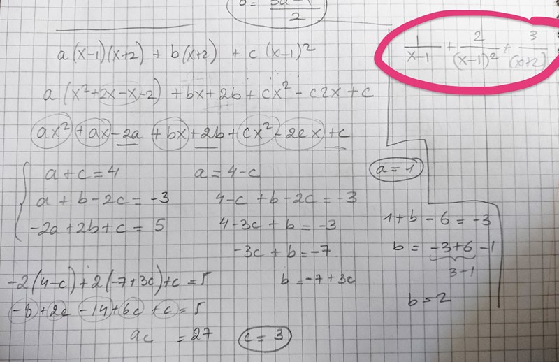 Men men. Jag måste integrera en funktion, men först partialbråkuppdela den.