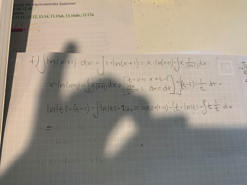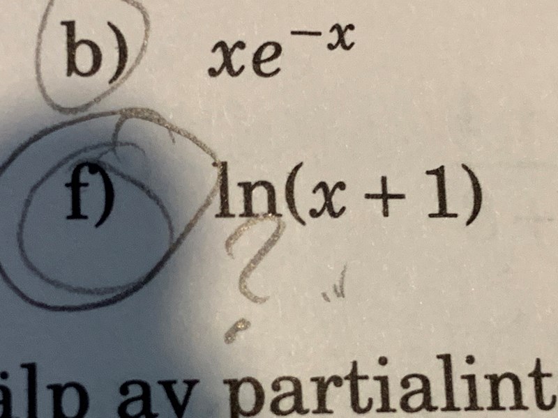 ifall vi sätter f(x)=1 och g(x)=ln(x+1) får vi