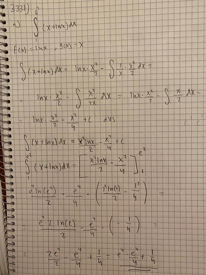 Partiell integration gör man på en produkt, exempelvis xlnx. Här har du plus inte gånger. Jag skulle dela upp integralen i två stycken, en för x och en för lnx.