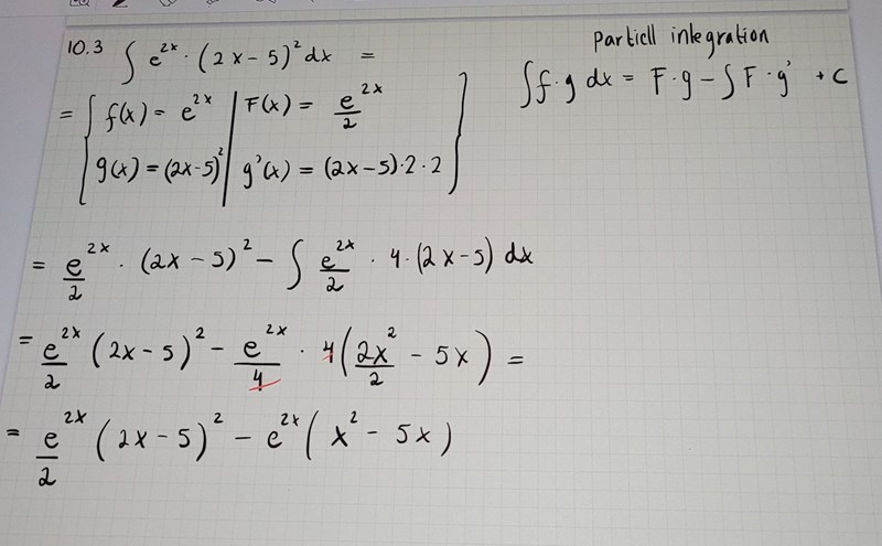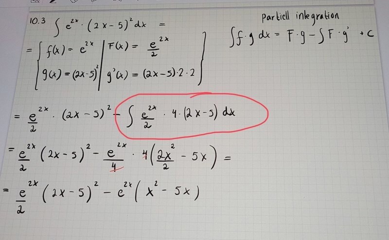 Enligt min uppfattning måste göra en pi till med det röda uttrycket, det innehåller både x o e^x.