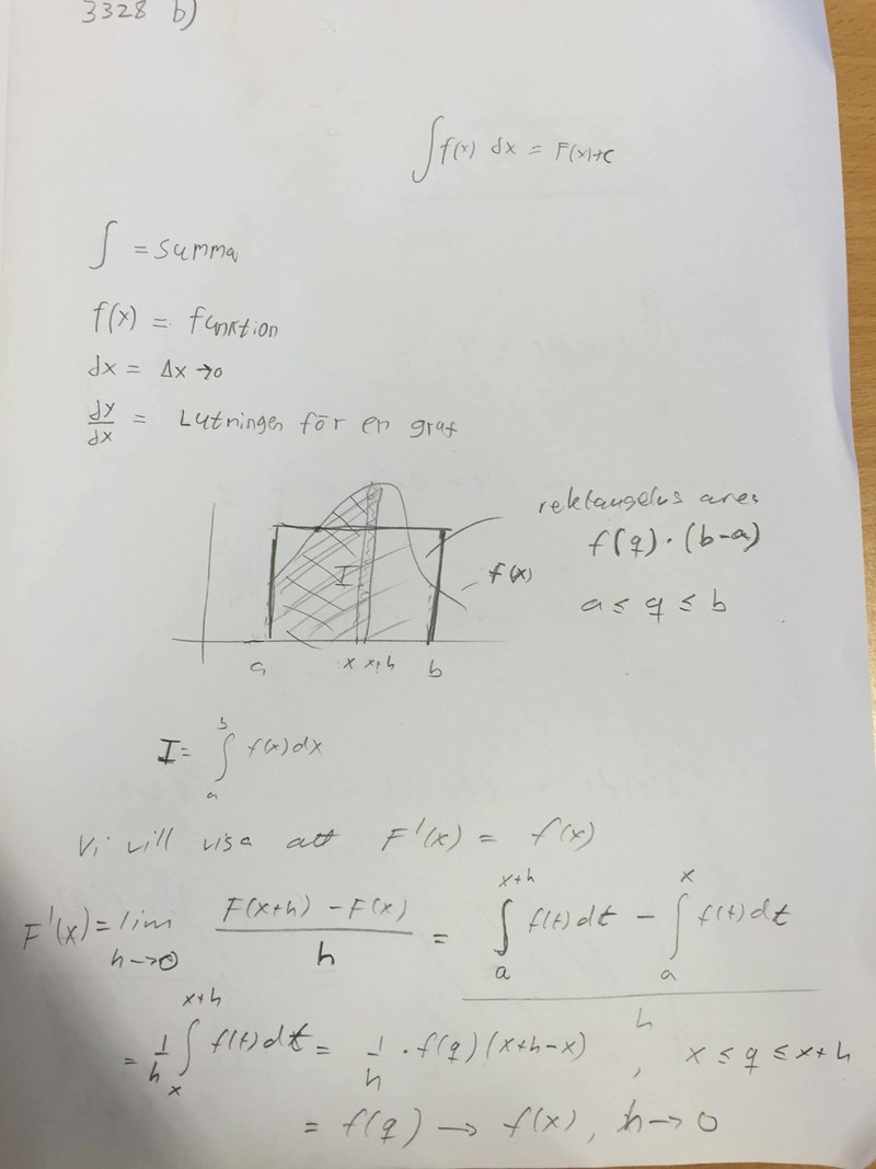 Förstår väl nästan.. Han skriver upp derivatan för den primitiva funktionen "integral style"