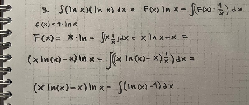 Jag försöker göra partiell integration genom att sätta hela (ln(x))^2 till den delen som ska deriveras, men jag kör ändå fast.