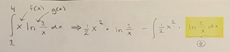Hur löser jag denna partiella integration för naturliga logaritmer?