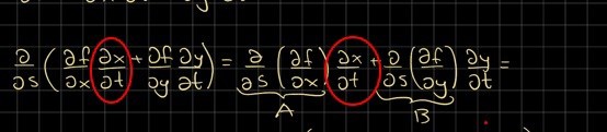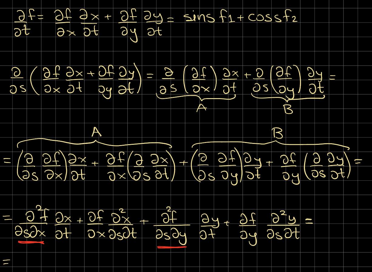 Alltså, d/ds ( 4x3 y7 sins) = f1 * d/ds(dx/dt) + [f11 dx/ds + f12 dy/ds ] * dx/dt