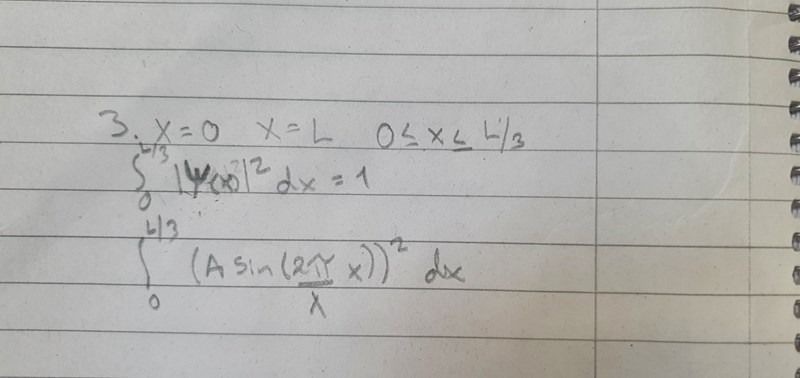 Jag läser just nu fysik 3 och har problem att lösa en uppgift där man ska beräkna sannolikheten att hitta en partikel i den vänstra tredjedelen av en låda med oändligt höga väggar.