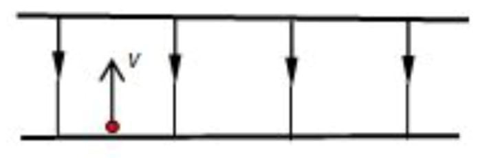 Partikel med begynnelsehastighet i homogent elektriskt fält