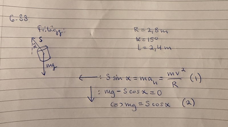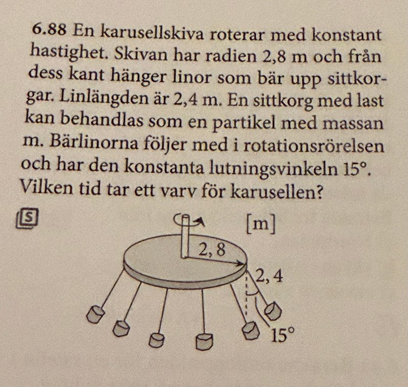 Jag vet inte hur jag ska fortsätta härifrån för att besvara frågan. Av detta kan jag få reda på linkraften S men vet inte hur jag ska gå vidare efter det. (an är den centripentala kraften)