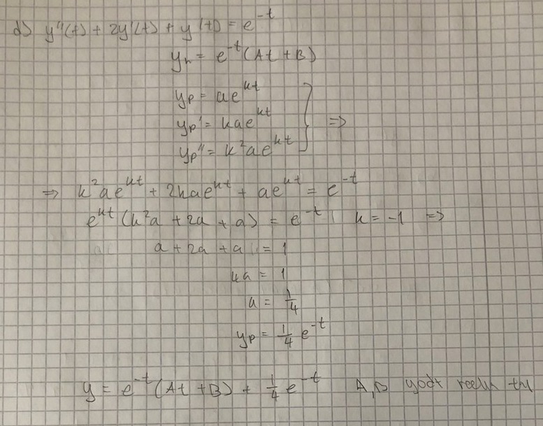 jag märkte precis att jag har gjort fel, om jag antar att k =-1 blir värdet innanför parantesen 0 och 0=e^(-t) vilket inte leder mig någonstans? Nu blev det ännu jobbigare :(