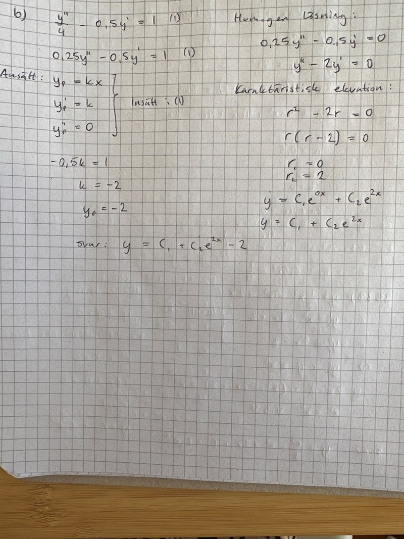 Jag får att partikulär lösningen blir -2 men facit säger 2x. Jag tror dock jag har rätt… Vad tycker ni?