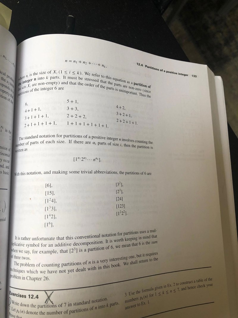 Laguna skrev:Har du förstått delar av exemplet? Kan du skriva ut partitionen [15]? Och [124]?