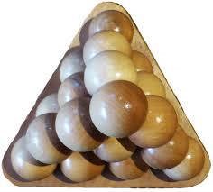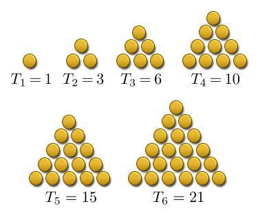 Lager 1, 2, 3, 4 5 innehåller t.ex 1, 3, 6, 10, 15 kulor. Om man sedan flyttar sig till nästa sneda rad får man ut det totala antalet kulor i pyramiden