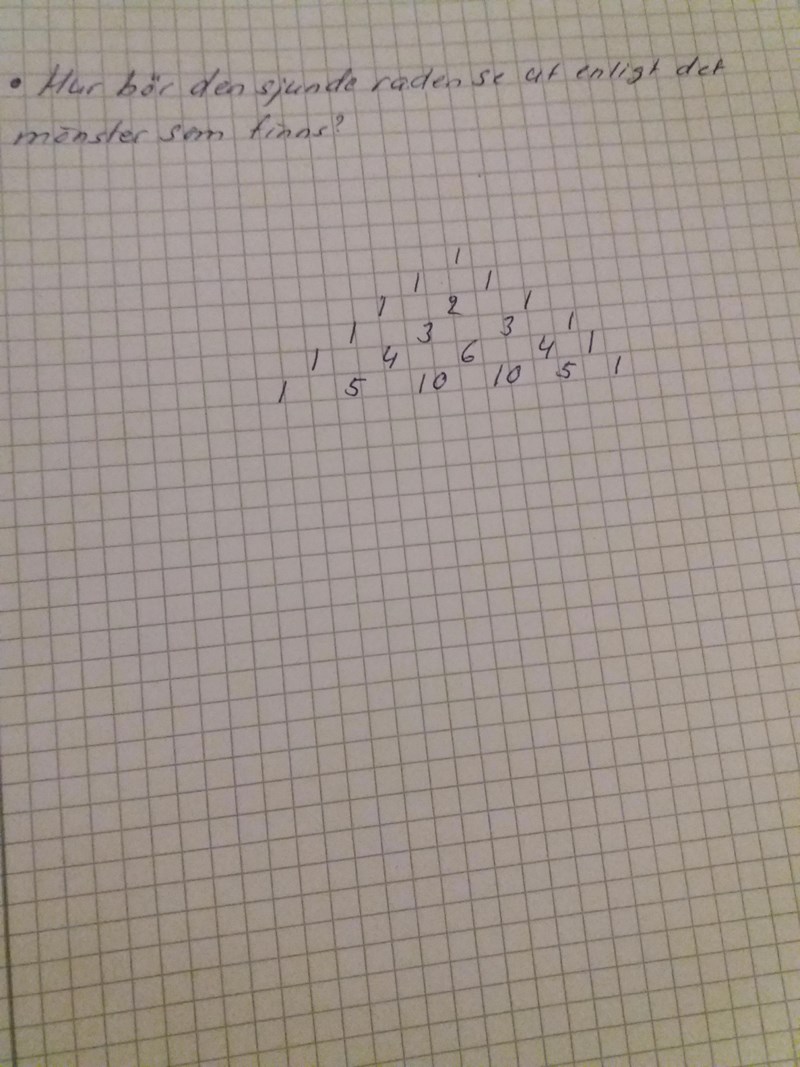 Gör det! Där står det hur du skall konstruera Pascals triangel.