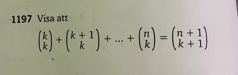 Matematik / Matte 5 / Kombinatorik 1 svar 139 visningar jalsho behöver inte mer hjälp Avmarkera jalsho 317 Postad: 12 okt 2024 17:31 Pascals formel Hej Jag har fastnat helt på denna fråga Trinity2 Online 3710 Postad: 12 okt 2024 23:48 Användare skriver Svara Du behöver Logga in eller Bli medlem först! Avbryt