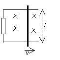 Ett ledarstycke med längden l = 45,5 cm rör sig som figuren visar i ett magnetfält med hastigheten 0,75 m/s. Den inducerade spänningen är 0,11 V. Resistansen i kretsen är 2,5 ohm.