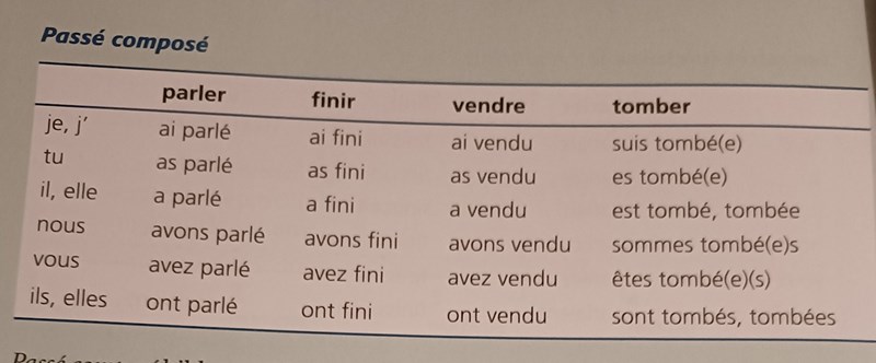 Stämmer det att det extra e't (som i tomber på bilden) läggs till på verb som i passé composé böjs med être och utförs av något feminint?