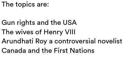 Om du inte vet vilka åsikter din lärare har kan det blir snårigt med 'Gun rights and the USA' eftersom måsnga har väldigt starka åsikter och mycket som skrivs är vinklat (åt alla håll).