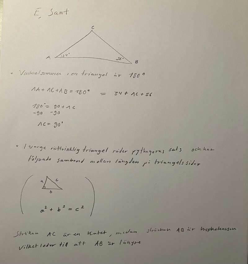 Nja, i Matte 1c börjar man med trigonometri. Men tänkte på Pythagoras sats.