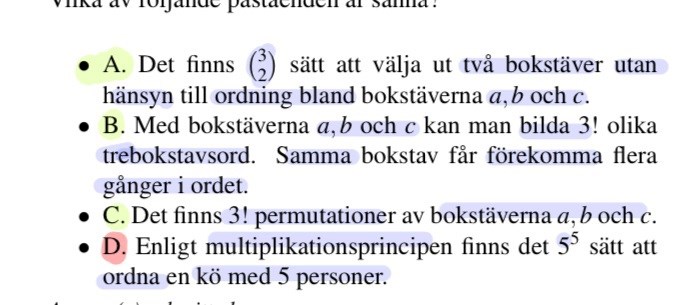 Dvs om man hade löst den: 3!/(3-2)=3! Vilket också styrket att C & B är sanna