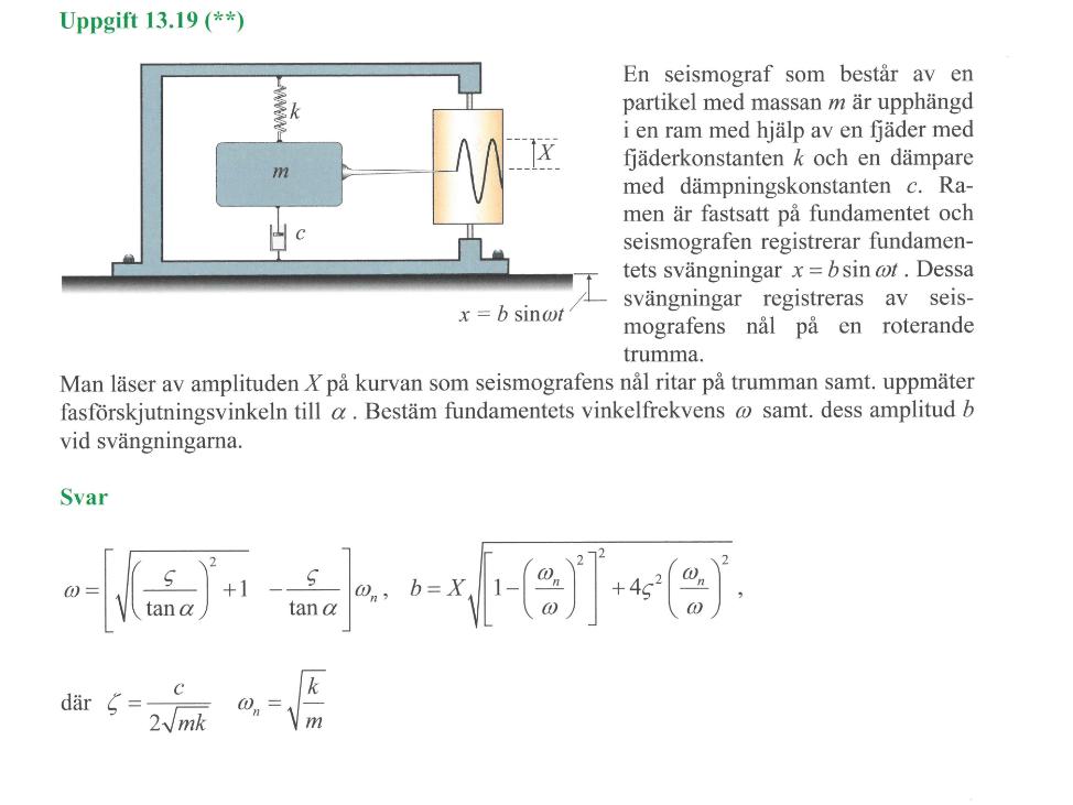 Påtvingad Dämpad Svängingar på seismograf Uppgift 13.19 Mekanik I