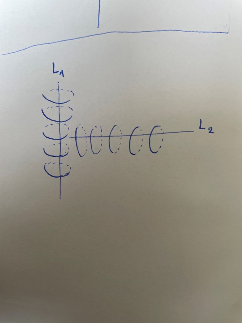 Förstår inte vad du menar. Hur omges L1 av L2s magnetfält, om tvåans magnetfält hela tiden är parallellt med L1 och ledarna aldrig korsar varandra (som jag ritat i bilden) ? Såvida jag inte har ritat fel, men vad är det jag har gjort fel isf?