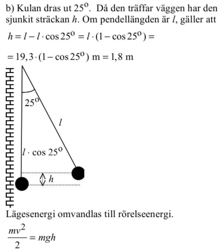 En rivningskula dras 25 rader i sidled. Sedan får den pendla in mot väggen som ska rivas. Period tiden är 8,8 och pendelnslängd är 19,3