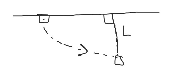 Hint; Notera att amplituden för en svängande pendel är den maximala utslagsvinkeln θmax i radianer. Relatera släpphöjden, pendellängden och vinkeln θmax geometriskt.