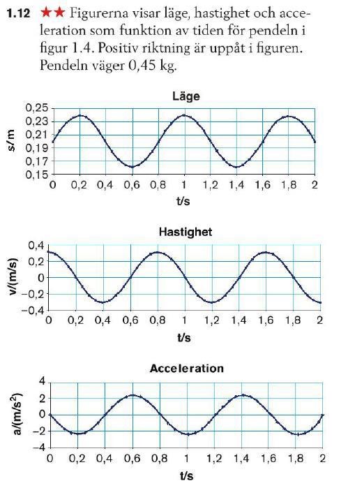 Perioden verkar vara precis 0,8s och därur kan man få att vmax = 0,8*amax och smax = 0,8*vmax, eftersom det är rena sinussvängningar. Utnyttjar man allt detta blir antagligen noggrannheten bättre, men det känns en smula avancerat för en gymnasiefråga.
