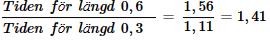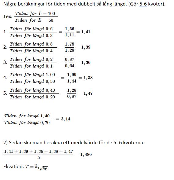 dubbelt så lång längd, t.ex. Tiden för längden 1,00/Tiden för längden 0,5. Det går att bilda 5-6 sådana kvoter.