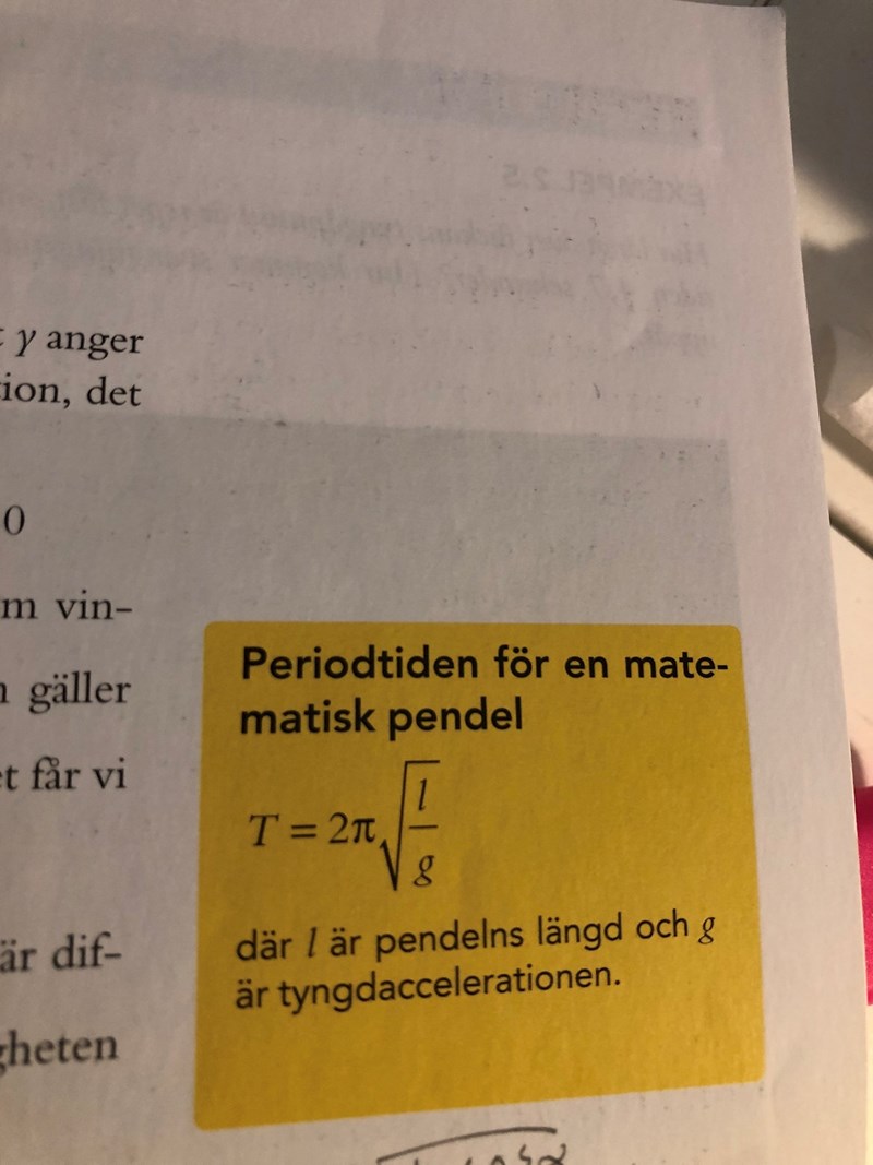 Till din fråga, hur ser formeln ut för en pendel? Vad är det som påverkar perioden för en pendel?