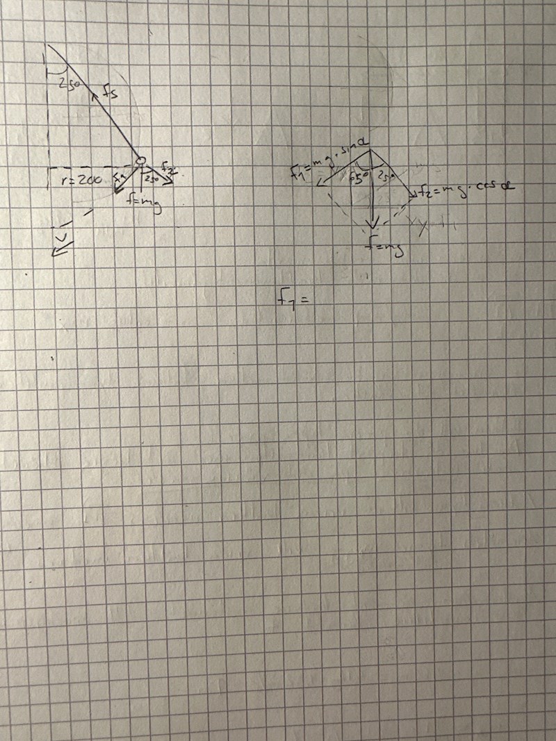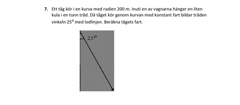 och vinkeln mellan centripetalkraften och tygbdpunkten är väl 65 grader