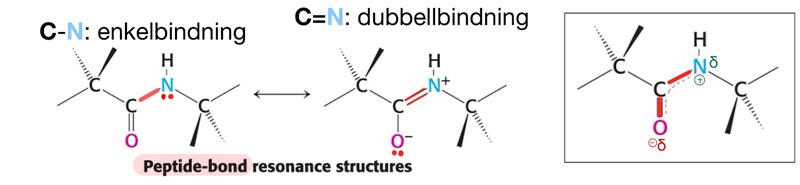 Prova att rita upp bindningen i båda resonansformerna. Och jämför sedan med om/hur en rotation kan ske längs med bindningarna längs peptiden, d.v.s. om polypeptiden kan roteras/skruvas på längden.