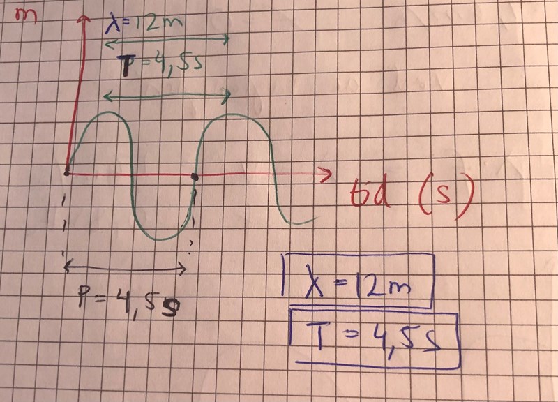 Har jag tänkt rätt att från våg topp till nästa vågtopp är det en period på 4,5 sekunder.