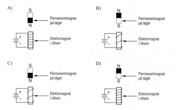 I det ena fallet kommer elektromagneten att lyfta tåget, i det andra fallet dra det neråt.