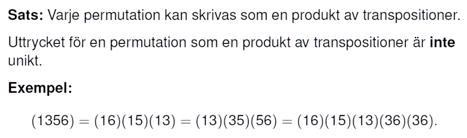 Vet du vad är en transposition är, och vad (1 6) betyder här, och (1 3 5 6)?