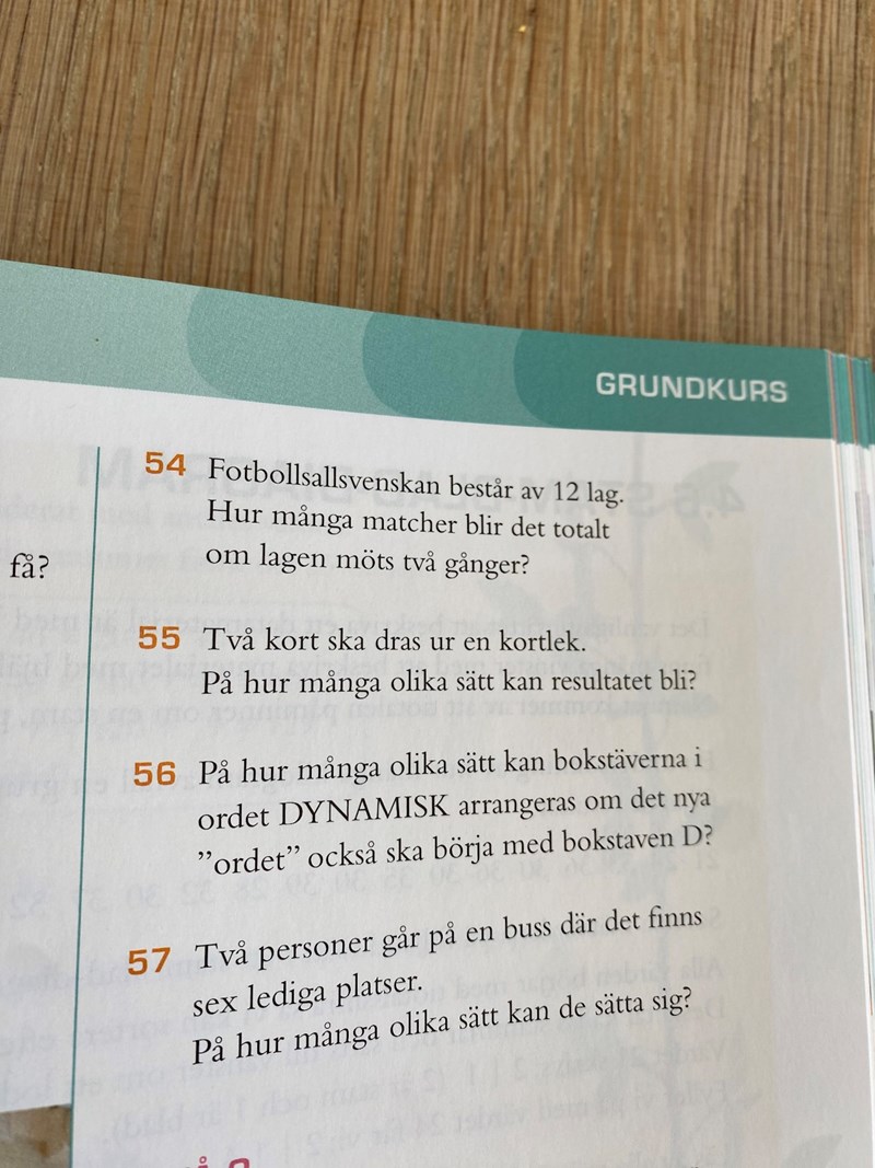 Lag 1 spelar 11 matcher mot de andra. Lag 2 spelar 11 matcher, men vi har redan räknat den med lag 1 så det blir 10 matcher. Lag 3 spelar 11 matcher men vi har redan räknat de med lag 1 och 2 så det blir 9 matcher. Fortsätter man på samma vis leder detta till 11+10+9+8+7+6+5+4++3+2+1+0 matcher.