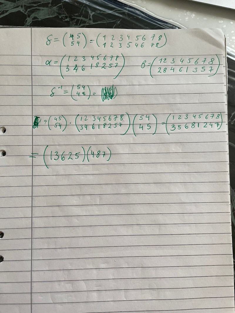 är den permutation som går från ett element i den övre till motsvarande i den nedre raden. Inversen går då omvänt uppåt.