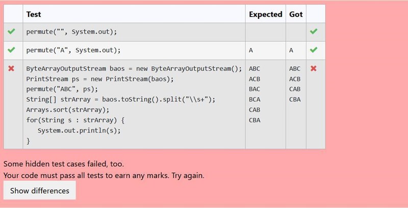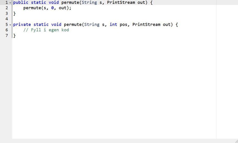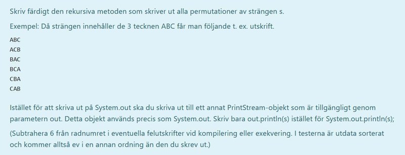 Okej jag tror jag förstår! Jag har lite svårt nu när jag sitter med det eftersom permute här är en void metod. Om jag spara en bokstav och skickar in resten i permute så får jag den inte att returnera permutationerna.