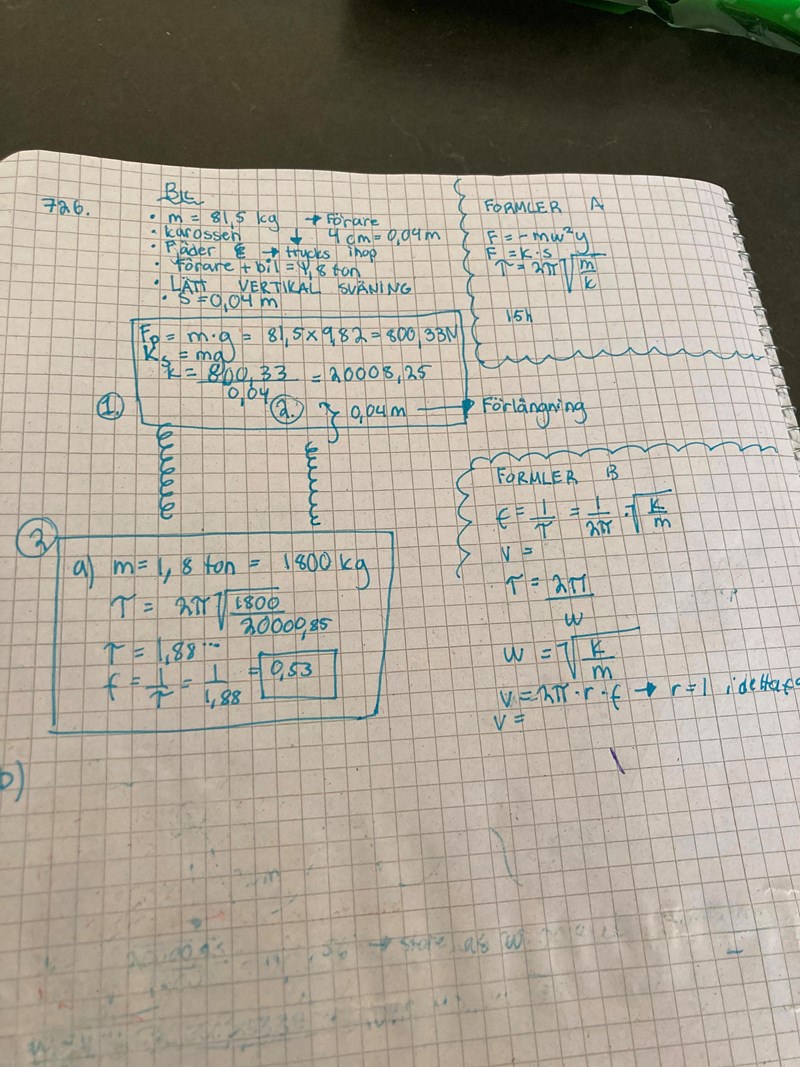 hej! Jag har lyckats lösa a) men försökte lösa B men svängning energi tänk. Men det blev helt konstigt:( . Hur ska man tänka?