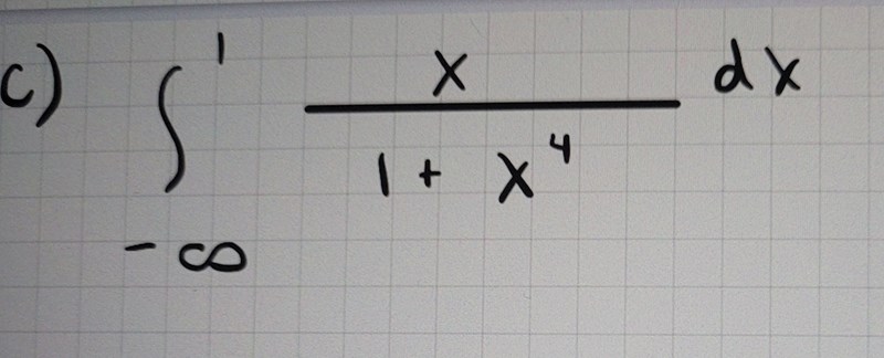 Det blir lite rörigt, men jag skulle först faktorisera x4+1. Det blir två reella andragradspolynom. Sedan partialbråksuppdela. Sedan kvadratkomplettera och sedan börjar det likna 1/(x2+1).