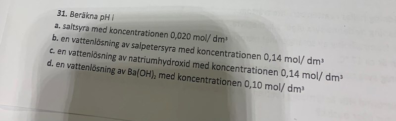 naytte skrev:Jag är inte så väl bevandrad på det här området själv, men visst finns det ett samband som säger pH+pOH=14 (i vatten)? I det här fallet kan du ju definitivt beräkna pOH, och då får du pH-värdet på köpet.