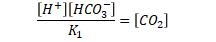 där [HCO3-] fås med molvikten 61 mg/L och K1= 10^-6,35 vilket ger 1,274 mmol/L CO2