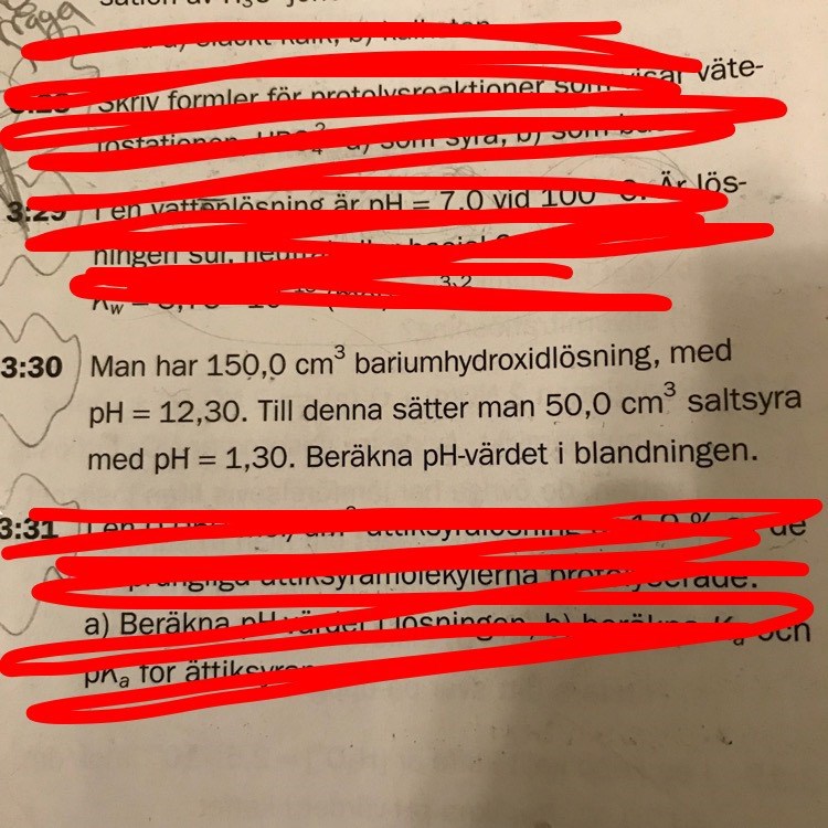 Hej min uppgift lyder såhär och jag började räkna men det blev fel. Jag tänkte att man kanske skulle kunna addera koncentrationen av oxoniumjoner i båda lösningarna så att man får en total koncentration av oxoniumjoner och sen beräkna pH. Men jag fick fel svar....